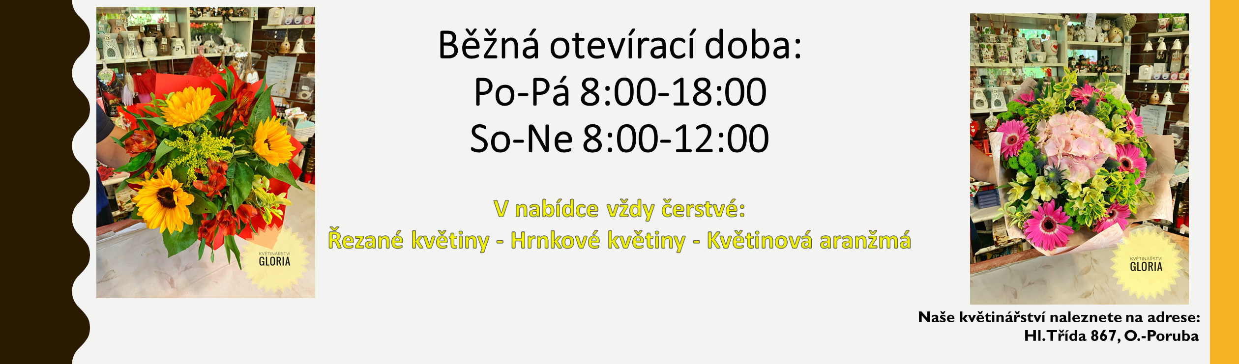 Naše květinářství je více než 25 let na trhu v oblasti prodeje květin. I přesto, že nadále je pro nás nejdůležitější osobní kontakt se zákazníkem, rozhodli jsme se zprovoznit e-shop a usnadnit Vám tak nákup v oblasti květin. Abychom však zachovali možnost přímého kontaktu jsme pro Vás připraveni po-pá 9-17, so-ne 9-12 telefonicky vyřídit veškeré dotazy či upřesnění objednávky. Obsluha e-shopu je velmi jednoduchá stačí vybrat zboží dle kategorie a objednat (viz. výše Jak nakupovat?). Vše zpracujeme a o průběhu Vaší objednávky od převzetí až po předání Vás budeme informovat. Kytice jsou ve skutečnosti mnohem krásnější, než na obrázku a proto je pro nás radost předávat Vaši objednávku konečnému příjemci. Rozvoz objednávek provádíme dle časových dispozic zákazníka a to druhý den v případě objednání do 17:00, vždy jako bychom obdarovávali sobě blízkého člověka. Závěrem nám dovolte poděkovat za návštěvu našich stránek a doufat, že budeme v oblasti floristiky Vašim věrným partnerem.